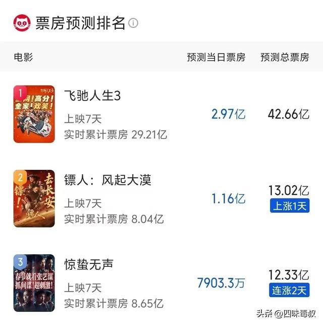 虽然早在春节档开始前,不少人预见了《飞驰人生3》的领跑地位,但档期内如此大的断层落差还是出乎意料。