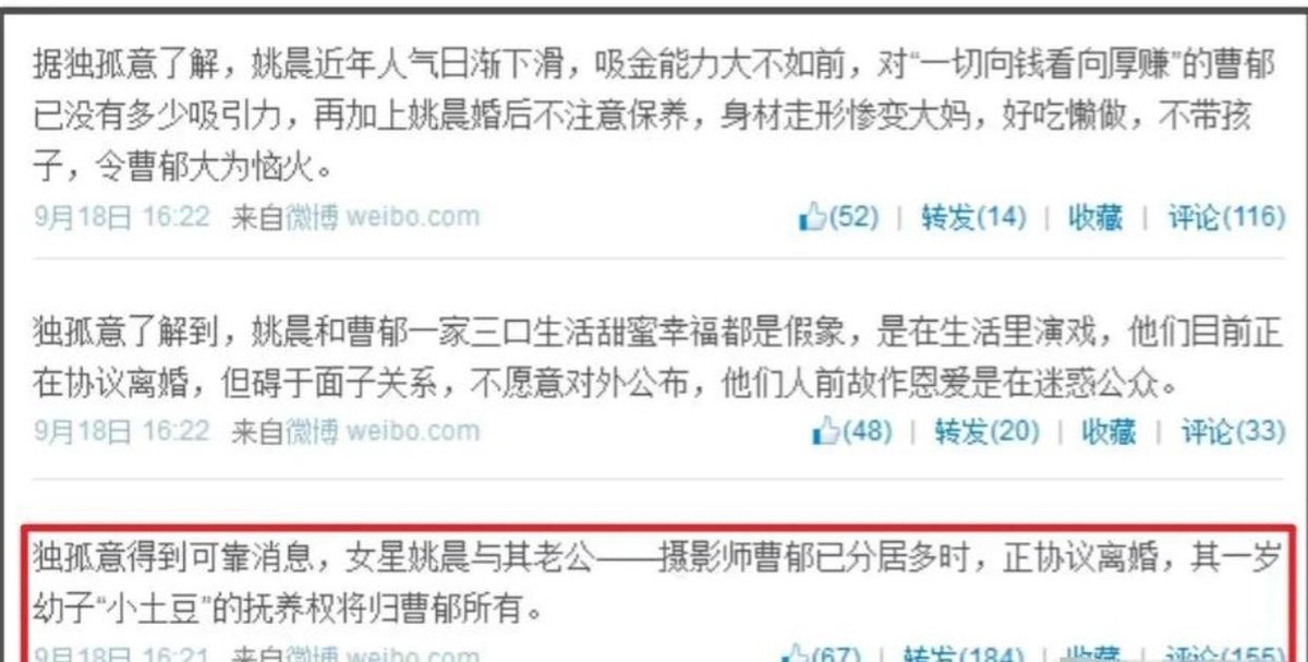 照片曝光后,姚晨和曹郁离婚的消息,再度引发热议。