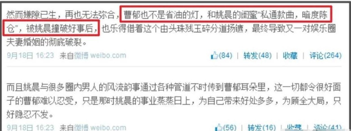 爆料里指名道姓,说曹郁出轨姚晨的女闺蜜。