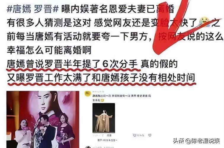 那时候大伙儿都夸唐嫣重情重义,说罗晋娶对了人,还说他俩是娱乐圈难得的真情夫妻。