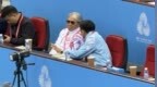79岁霍震霆在珠海看网球赛,与观众握手表现亲民,被搀扶上下楼梯