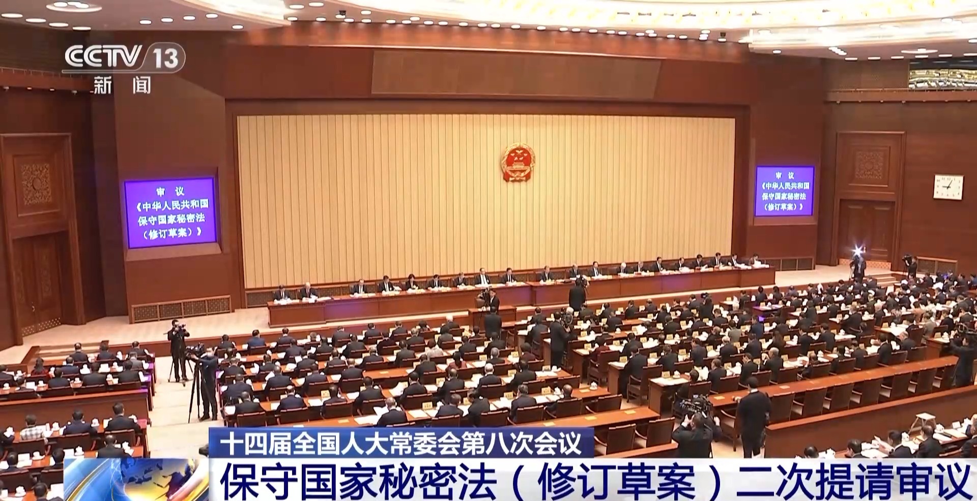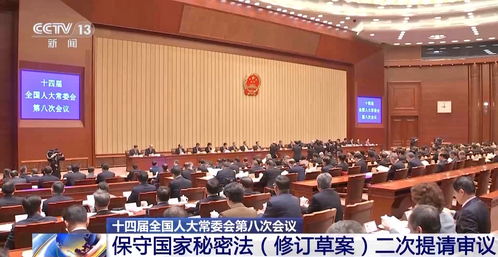据央视新闻消息,十四届全国人大常委会第八次会议今天(26日)上午在北京人民大会堂举行第一次全体会议。保守国家秘密法(修订草案)二审稿提请审议。草案二审稿完善确定保密事项范围的原则,进一步规范定密权限等内容。