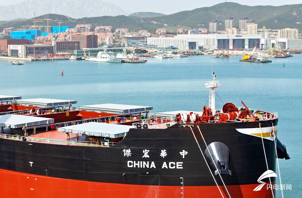 图为一艘货轮即将交付。