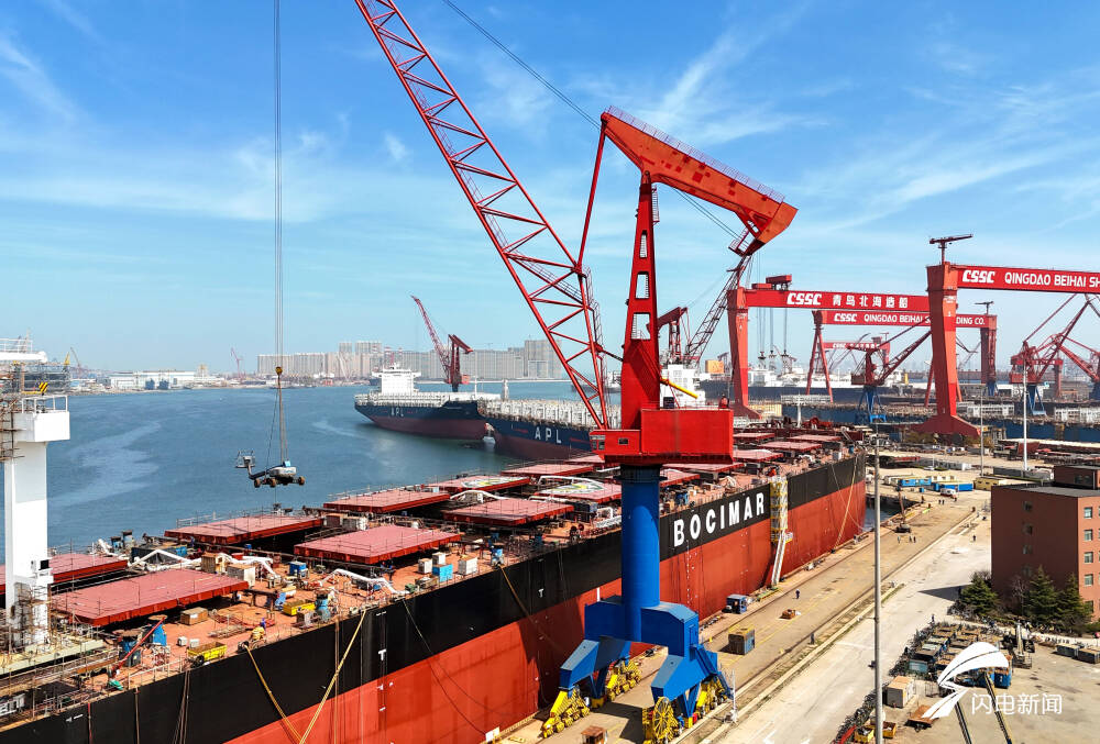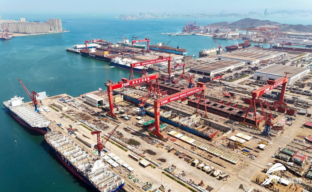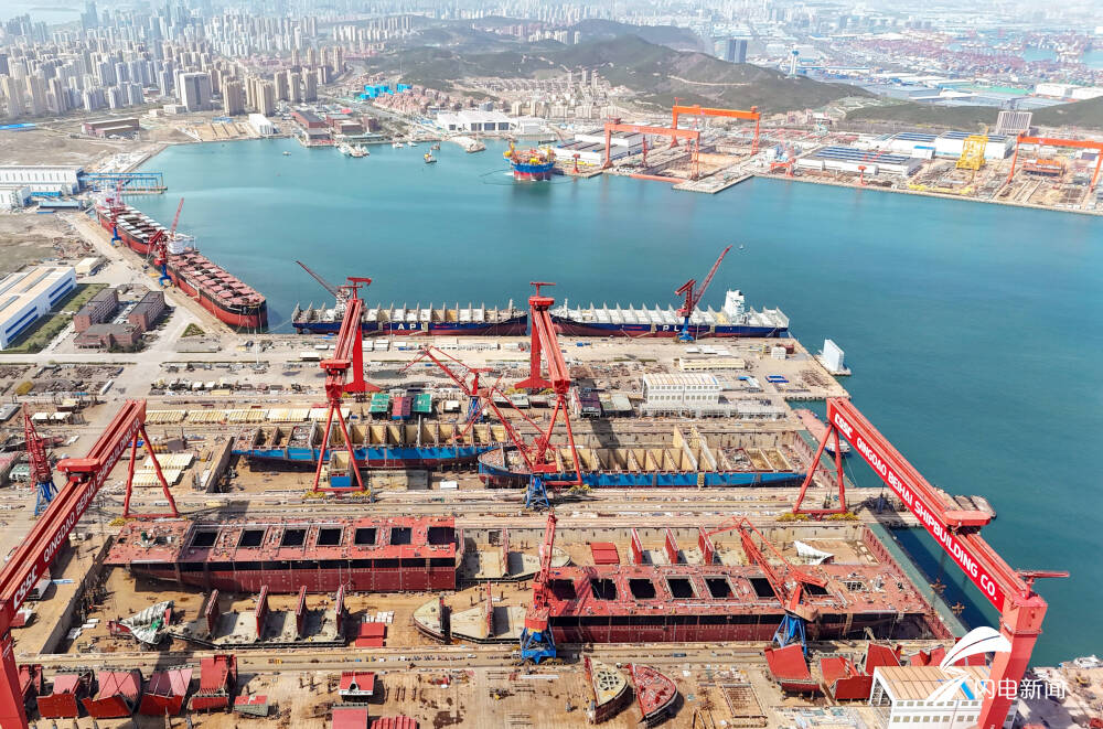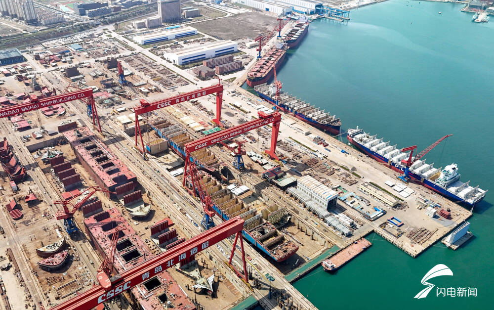 齐鲁网·闪电新闻4月20日讯 近日,青岛西海岸新区海西湾船舶海工产业基地一派繁忙,多艘大型船舶在建、维修。其中,中国船舶集团青岛北海造船有限公司订单已排至2028年下半年。