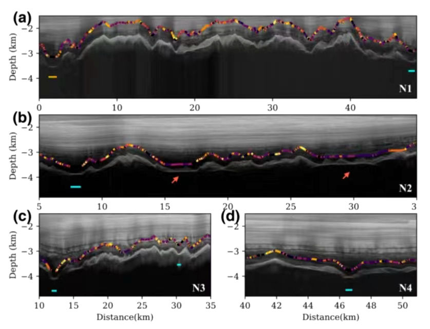 变分自动编码器(VAE)从冰雷达图像中揭示的新冰下湖。新华社发(中国极地研究中心供图)