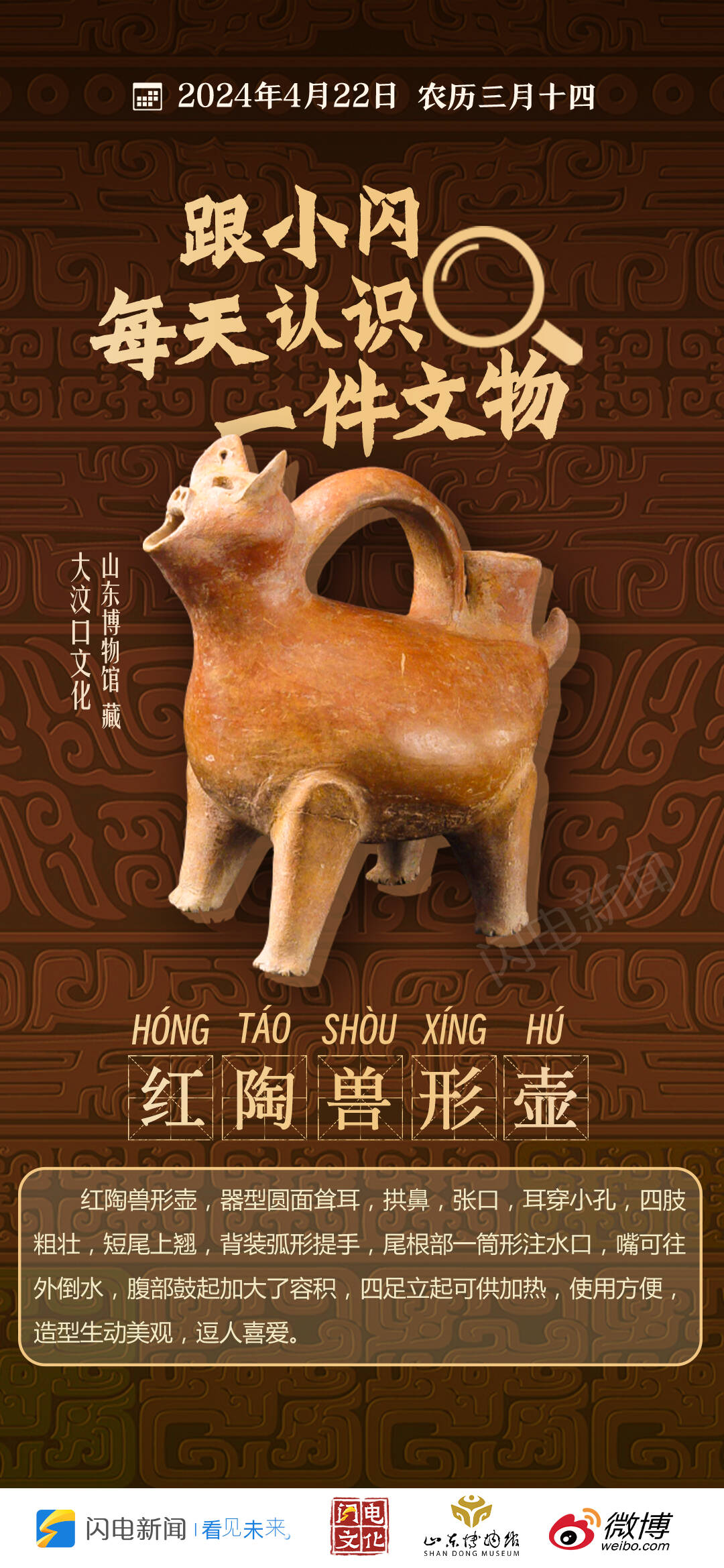 齐鲁网·闪电新闻4月22日讯 看文物,触摸历史的温度。闪电新闻联合山东博物馆、新浪微博推出“闪电每日文物”专栏,每天一件文物,快跟小闪一起探寻文物背后精彩的历史故事。