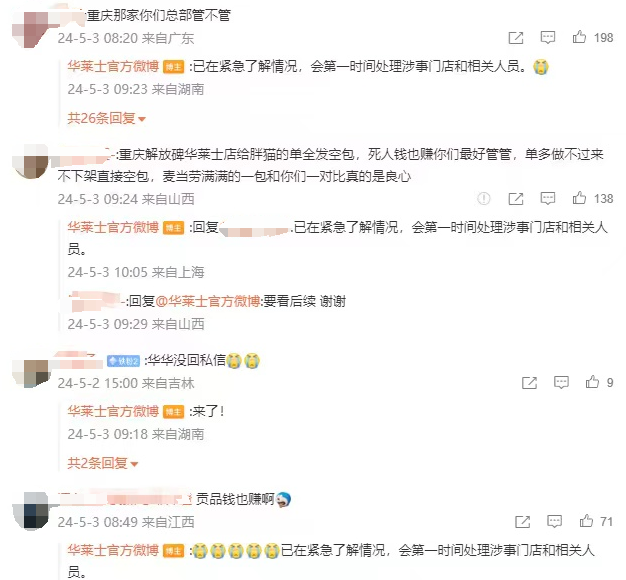 此外,华莱士官方微博也在评论区回应称,“已在紧急了解情况,会第一时间处理涉事门店和相关人员。”