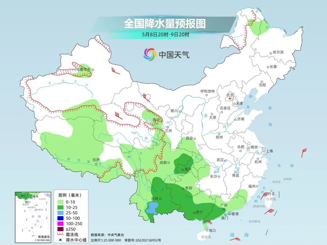 明后两天,西南地区东部到江南南部、华南中北部降雨将再度发展增多,不过这轮降雨整体强度不大、持续时间短,大部地区以分散性阵雨或雷阵雨为主。其中贵州西南部、广西西北部、广东东北部等局地有暴雨;上述部分地区伴有短时强降水、局地雷暴大风或冰雹等强对流天气。
