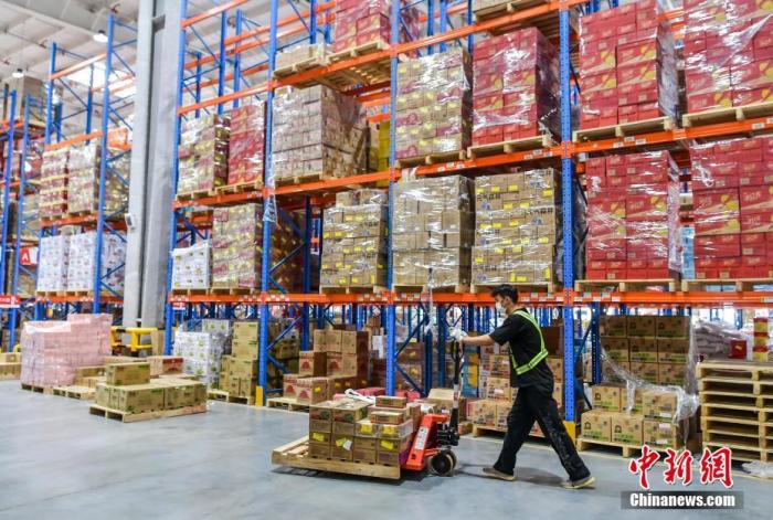 资料图:“618”电商购物节期间,物流工作人员正在分拣、转运快递包裹。 中新社记者 刘新 摄