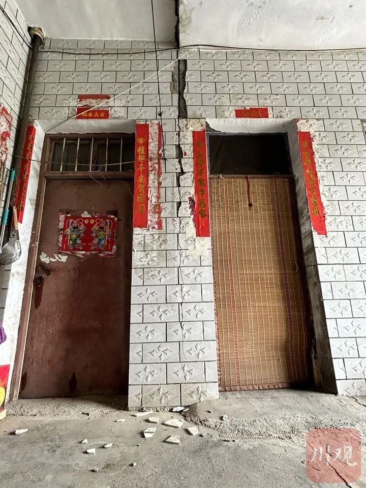 记者走访发现,薛庄村、钟岭村石榴院、民权村均有不同程度的房屋损毁,多以玻璃碎裂、内外墙面开裂、窗框变形等为主。