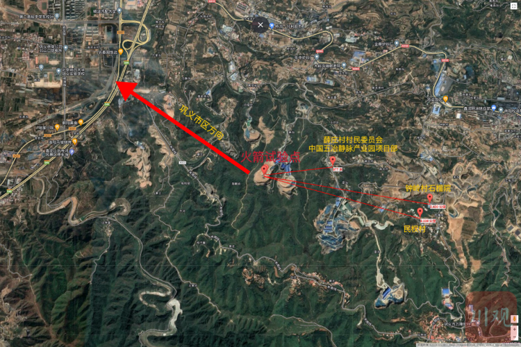 天兵公司火箭试验点所在的矿山距巩义市区的直线距离约3公里