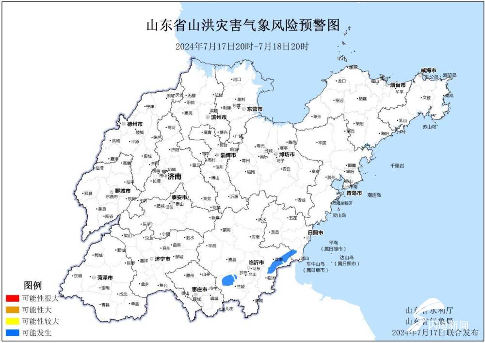 CYQY-生活与科技齐鲁网·闪电新闻7月17日讯 山东省水利厅和山东省气象局7月17日联合发布山东省山洪灾害气象预警:预计7月17日20时至7月18日20时,临沂、日照等市局部地区可能发生山洪灾害(蓝色预警)。蓝色预警区域包括:兰陵县北部、临沭县北中部、莒南县中东部及南部、岚山区西中部。