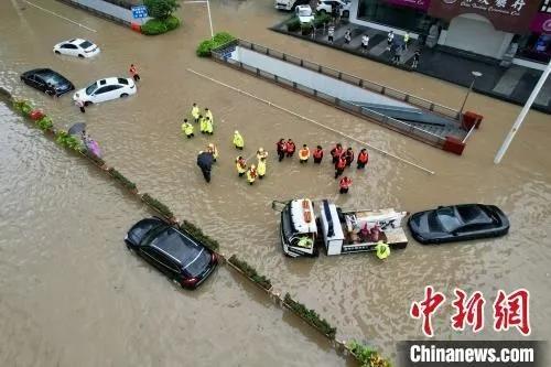 △2023年7月29日,福建福州,中心城区五四路上汽车被淹。中新社记者 王东明 摄