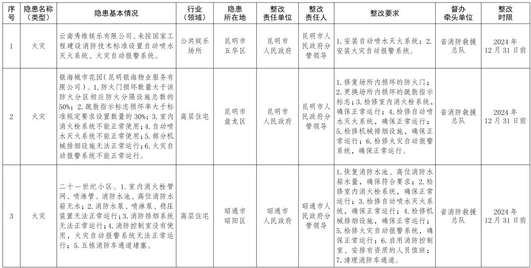 云南省人民政府办公厅关于印发《云南省人民政府2024年度挂牌督办安全生产重大隐患名单》的通知