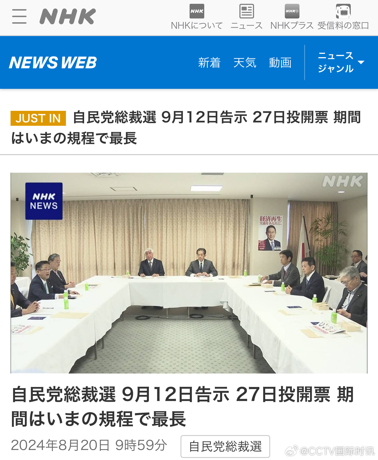 据日本媒体报道,日本执政党自民党总裁选举管理委员会今天(8月20日)举行会议,决定于9月12日发布自民党总裁选举公告,9月27日进行选举投票和计票。