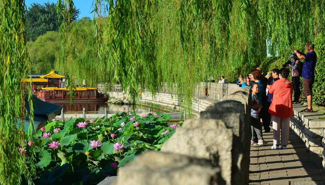 夏日的一个上午,我和友人逛大明湖,赏荷花。那天早上刚下过一场雨,空气中萦绕着淡淡荷香,清心悦目。一进大明湖景区西南门,只见荷花环湖而立,开得错落有致,经藕香榭,过玉函桥,柳荷之美尽收眼底。