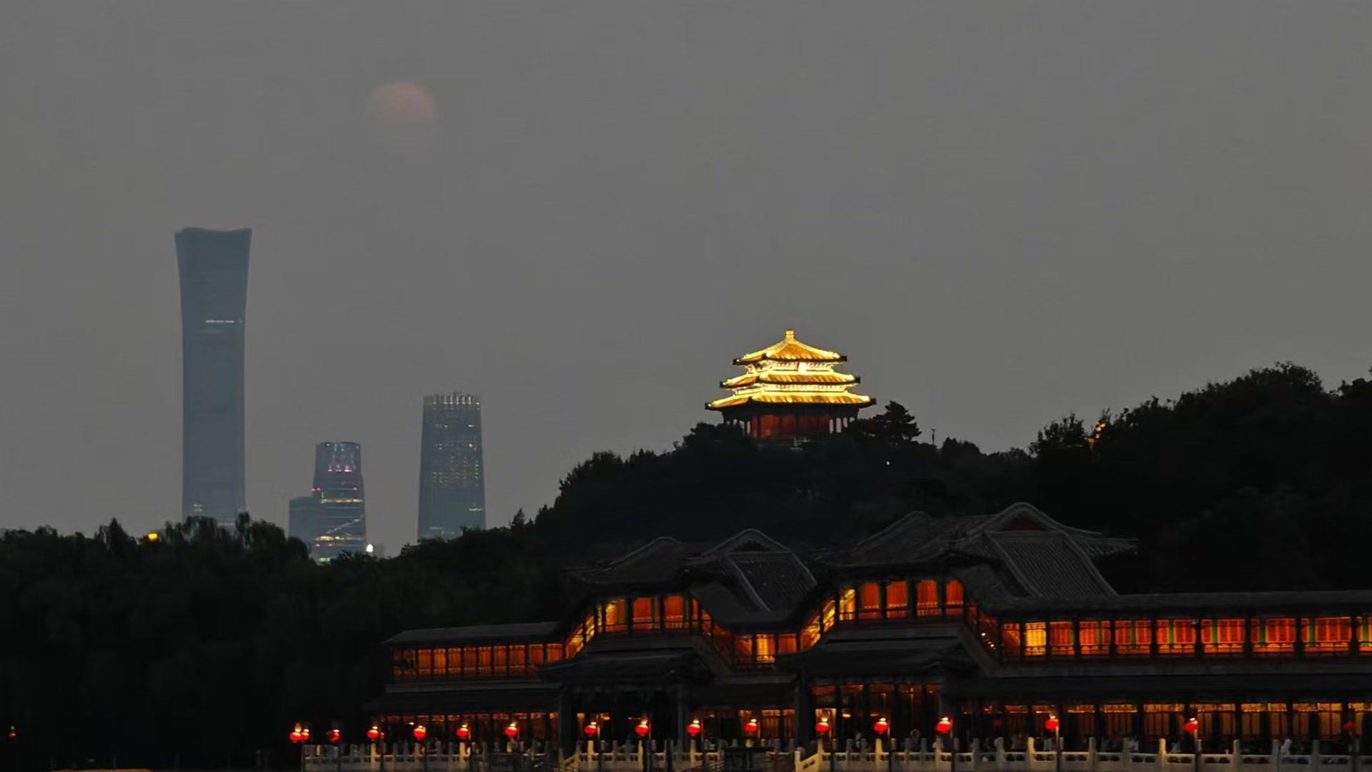 中秋夜,北京景山万春亭与“超级月亮”同框。白继开 摄