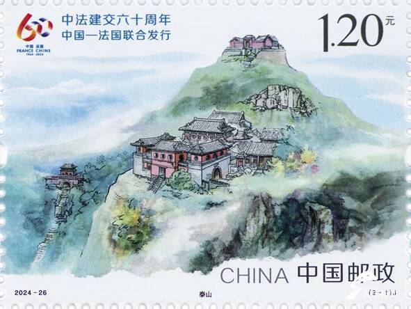 该纪念邮票一套两枚,邮票图案名称为:中华泰山、法国圣米歇尔山,邮票面值各别为1.2元。邮票计划发行数量为600万套。