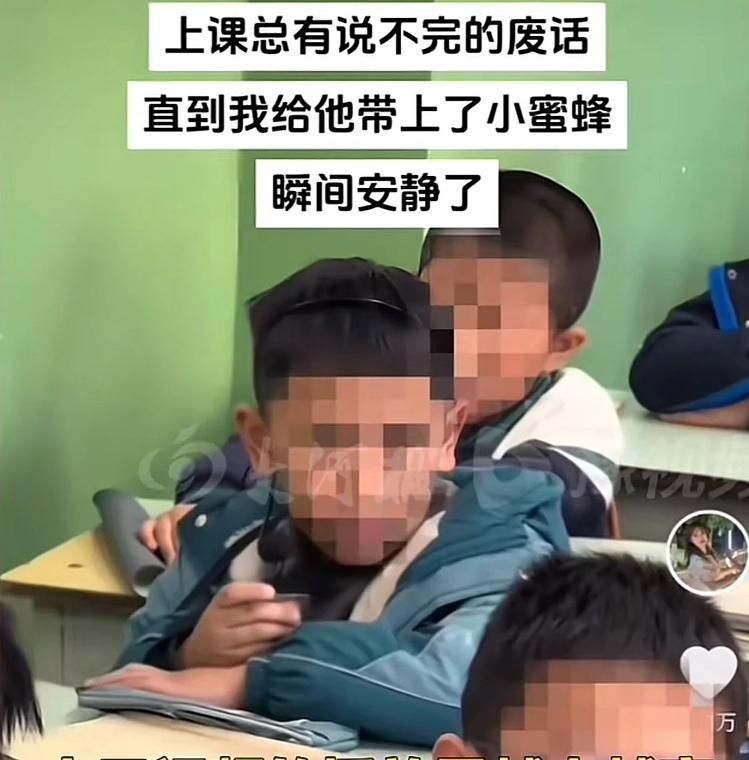 该视频引起热议并被广泛转发,随后,不少网友都纷纷晒出自己给班上学生戴“小蜜蜂”的视频,并表示这种方法很有效。