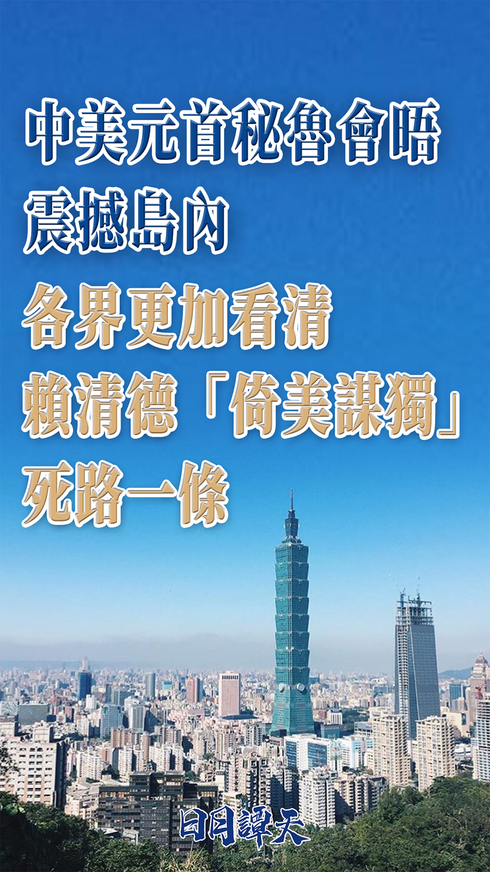 海峡两岸多位专家在受访时告诉谭主,大陆在台湾问题上的立场是一贯的、明确的。此次会晤,中方再次强调包括台湾问题在内的4条红线不容挑战,态度鲜明。中美元首秘鲁会晤再划红线,当头棒喝“台独”势力,让岛内民众更加看清,赖清德“倚美谋独”是死路一条。