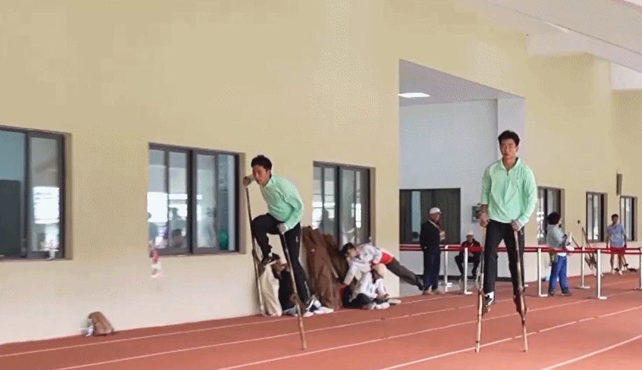 高脚竞速不仅是速度的比拼,更是技巧的较量。它和跑步不一样,需要运动员同手同脚,所以练习难度比较大。