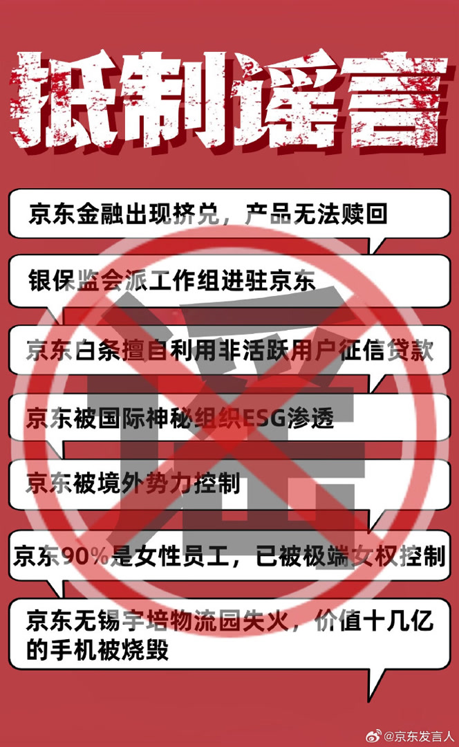 近期,少数机构及个人造谣抹黑、恶意攻击京东和创始人及其家人,经公安机关依法办案,部分造谣者已受到应有的惩处。目前,网络上还存在着部分谣言混淆视听,相关部门已立案调查。互联网不是法外之地,希望大家共同努力,共同营造清朗网络空间。