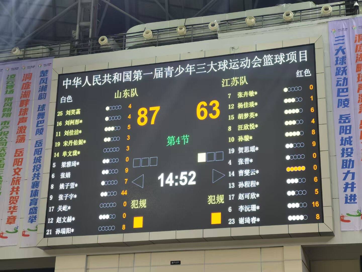 比赛开始后,山东女篮迅速进入状态,在张子宇的带领下打得尽显轻松,比分一直保持领先。首节结束,山东女篮22:12领先。第二节,山东女篮进一步扩大优势,半场结束时,山东女篮以52:33领先19分。第三节,张子宇继续展现强大统治力,造犯规两罚一中,随后多次得分,本节得到16分,尽管江苏队也有三分命中等表现,但仍未能缩小比分差距,三节结束山东女篮68:47领先。第四节,张子宇再度上场,山东女篮反击得分,张子宇也多次进攻得手,最终山东女篮以87:63力克对手赢得比赛,成功晋级四强。本场比赛,张子宇砍下全场最高的44分。