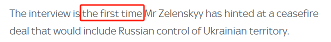 报道称,泽连斯基的这一表态尚属首次。