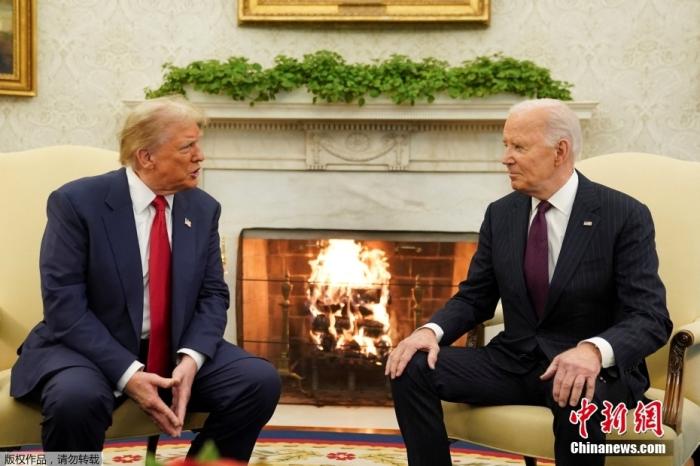资料图:当地时间11月13日,美国总统拜登在白宫会见当选总统特朗普。