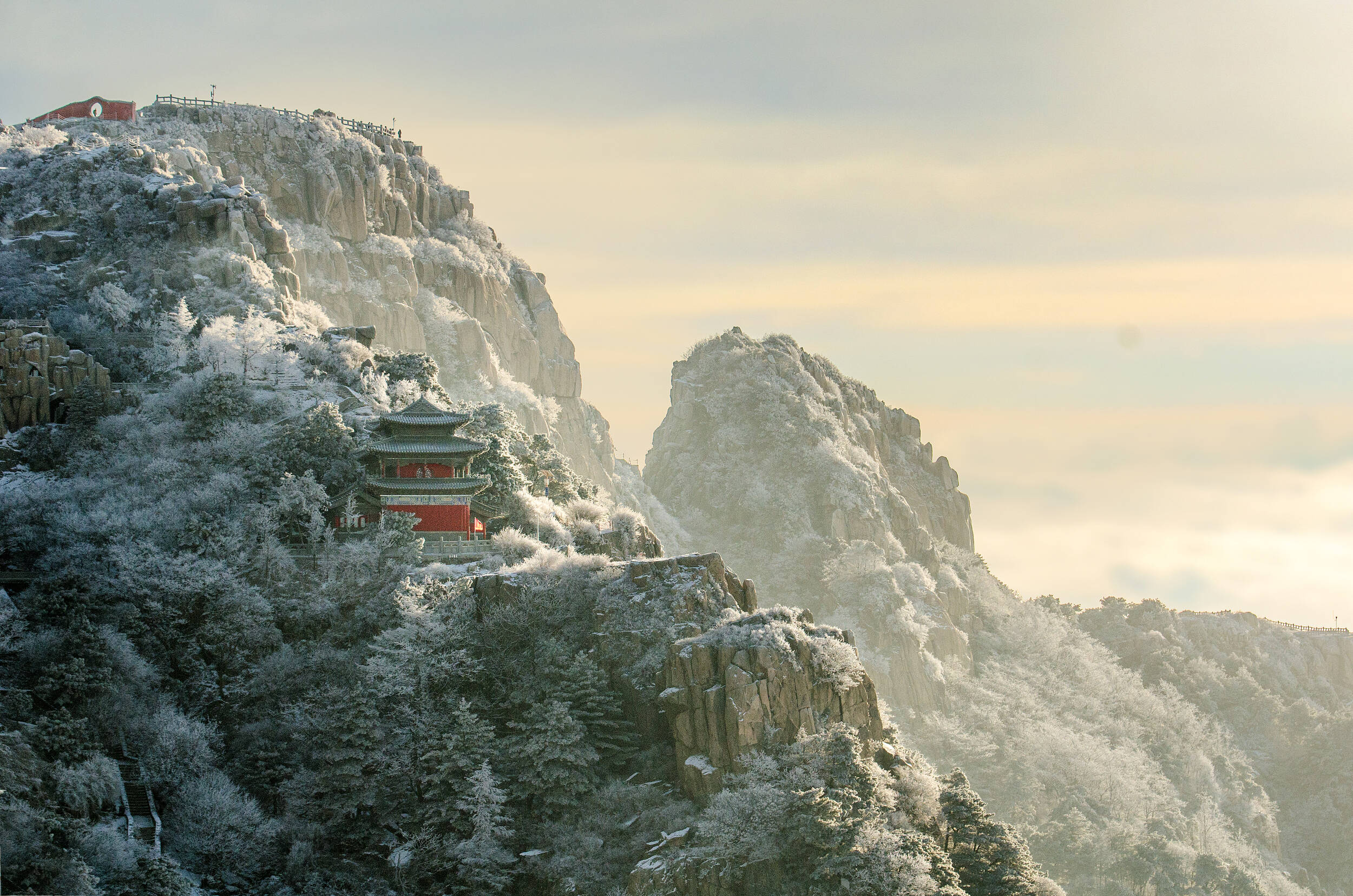 去年12月8日,四登泰山时已五十有六,入知天命之年。此次泰山之行,老友新朋说说笑笑,自西门桃花源乘索道而上。到了天街,我突然心有一问:传说中,泰山为什么安住着这么多的神?有象征着光明不朽的太阳神,有主宰万物生死的东岳大帝,有智慧慈祥的碧霞元君,有主持天庭的玉皇大帝,有象征长寿的西王母娘娘……除了这些大神外,玄女、伏羲、蚩尤、飞廉、穷奇、后羿也各有供奉。泰山巍巍,苍茫静穆,三界神灵各安其位:天上神仙有风伯、雨师、雷公、电母,地狱神仙有城隍、阎王,人间神仙有三皇、孔子、颜子、鲁班以及为民除妖驱魔的石敢当。真可谓诸神在山,日夜听报应愿,解难救急,俯视万家灯火,共襄天下太平。