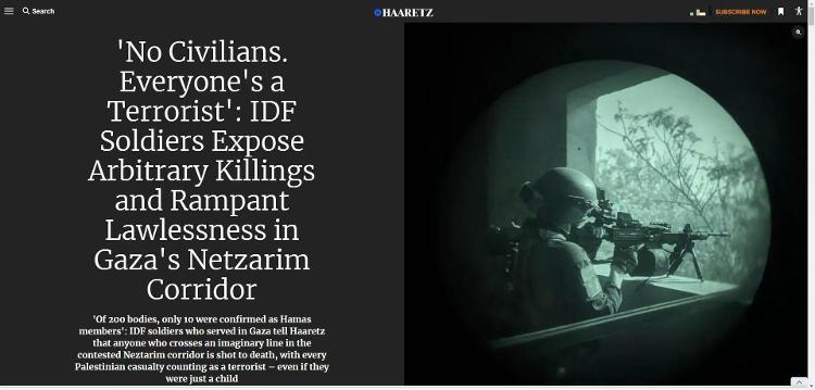 这些不分青红皂白的杀戮和将平民伤亡例行归类为哈马斯成员的行为,已有多名以军士兵在接受《国土报》采访时提及。
