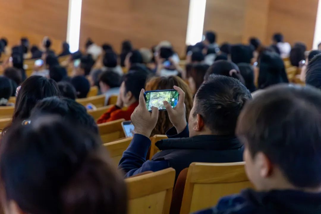 台下,有慕名而来的各专业同学,有了解敦煌艺术的老师们,大家全神贯注地感受着这场来自“敦煌的女儿”的文化洗礼,有人在看到幻灯片上精美的壁画图片时,情不自禁举起手机拍摄,也有人用一笔一画记录下满满的讲座笔记。