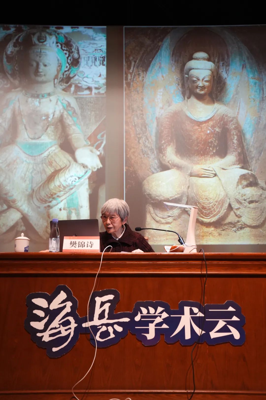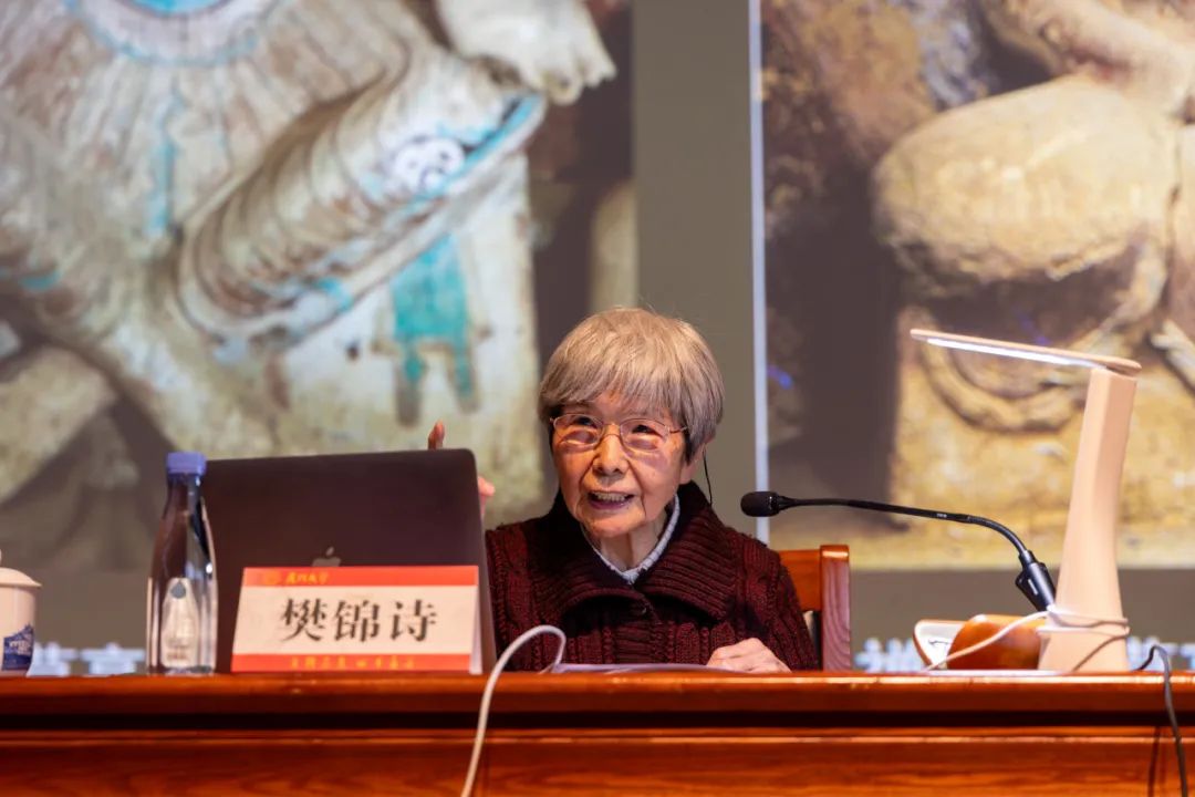 于是,在接下来的三个多小时里,樊锦诗时而翻阅着手中厚厚的讲稿,时而盯着面前的电脑屏幕,时而还转过身去检查幻灯片的放映情况。看着时间一分一秒地流逝,她一遍遍地说“让我再啰嗦几句”,以求把最精彩的敦煌展现在所有人面前。