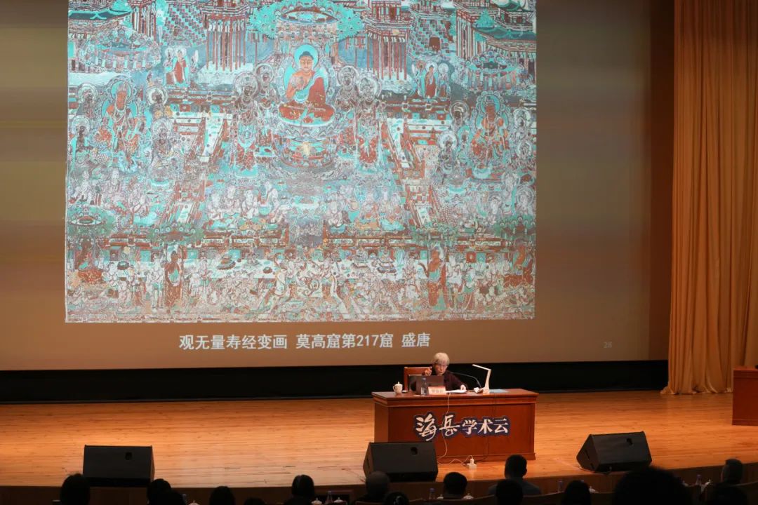 樊锦诗从佛教的创始人讲起,梳理了敦煌莫高窟的建造历史。她谈到两个重要的时间点:公元前111年和公元366年。