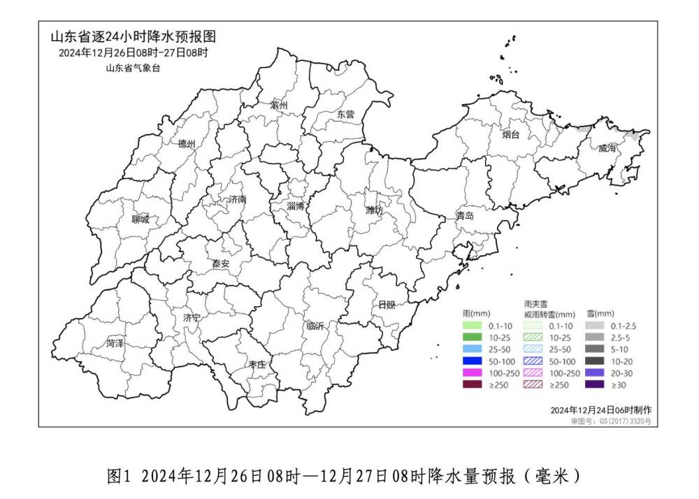 24日夜间到25日白天,全省天气多云间晴;鲁南地区25日早晨有雾或轻雾。滨州、东营、潍坊、日照和半岛地区南风3~4级转北风4级阵风5~6级,其他地区南风转北风2~3级。最低气温:沿海地区-1℃左右,其他地区-3℃左右。最高气温:鲁南地区8℃左右,其他地区6℃左右。