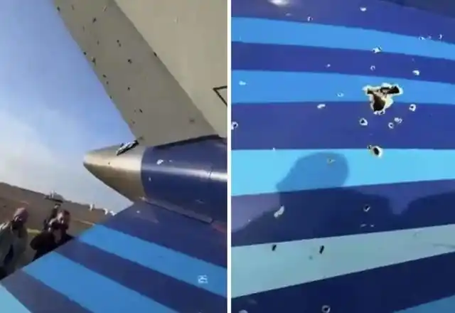 现场流传的图像显示,飞机机尾出现可疑孔洞