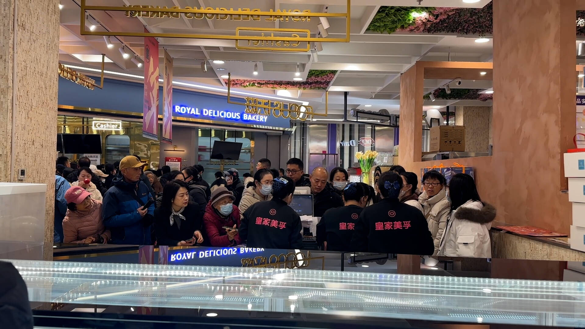 记者在皇家美孚永旺梦乐城店发现,门店内部被消费者围得水泄不通,货架上空空如也,等待购买的市民已经排成了长长的一队。有买到面包的消费者告诉记者,他们都是9点前就来这里排队的。通过透明玻璃可以看到门店内部还有工作人员正在制作蛋糕面包,但由于排队人数过多,门店已经采取限购措施,一人只能购买两个面包,蛋糕也只制作预订单。