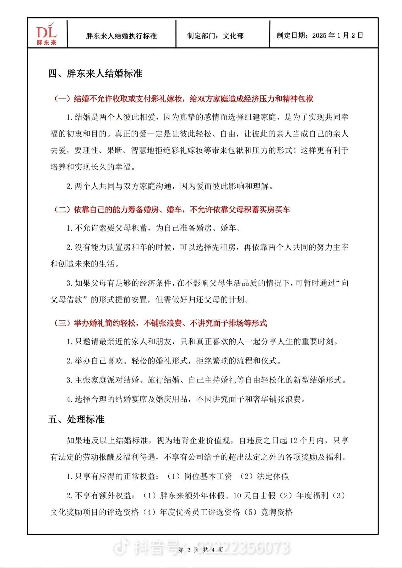 2024年11月,胖东来就因有关彩礼等要求引发争议。创始人于东来在个人账号称“胖东来员工结婚酒席不超5桌”“员工结婚不允许要或付彩礼”“做不到将取消一切福利”等引发讨论。