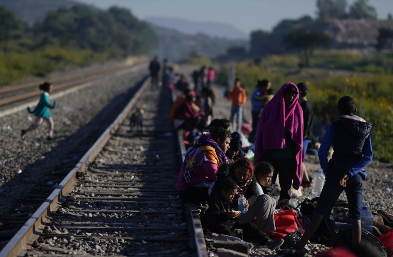 △2023年,移民在墨西哥韦韦托卡铁路沿线等待登上北上的货运列车。(图源:美联社)