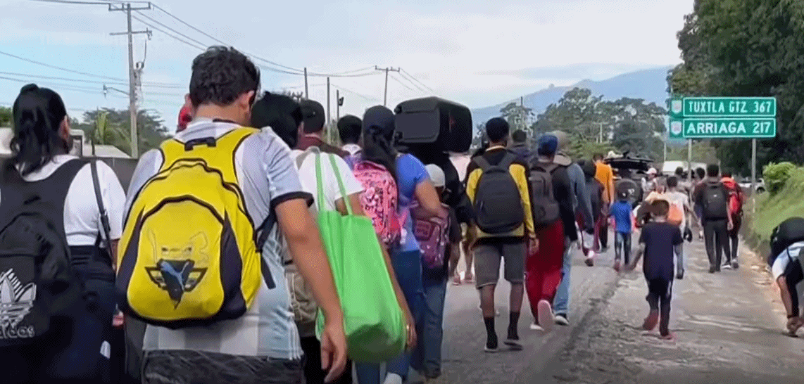 这是2025年新年伊始,第一批赶往美墨边境的移民队伍。