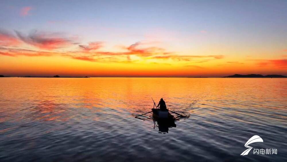 齐鲁网·闪电新闻1月7日讯 当夕阳的余晖洒在东平湖上,仿佛被大自然打翻了调色盘。天边的彩霞如轻纱般飘浮,从天际漫向湖面,水天相融。霞光在粼粼波光上跳跃闪烁,似无数碎金铺陈。湖中的渔船悠悠,在这漫天彩霞里,编织着岁月静好的梦。