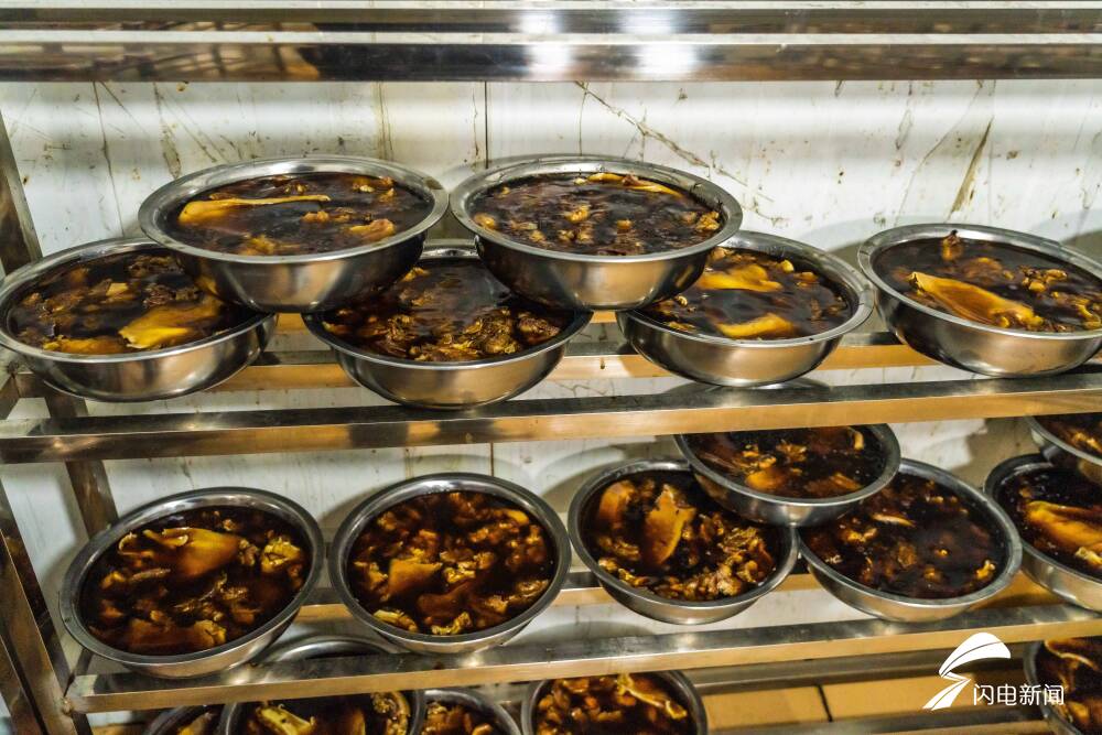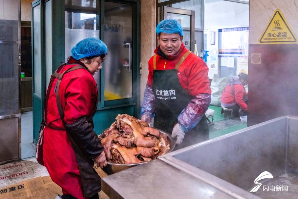 齐鲁网·闪电新闻1月7日讯 在山东省莒县长岭镇,徐德军以制作盆肉而闻名,这一传统手艺已传承至他手中超过40载。他家中拥有一口被誉为“江北第一锅”的巨型大锅,单次能烹煮高达2000斤的猪头肉。每日销量超过一吨,展现了其盆肉制作的非凡规模与市场需求。