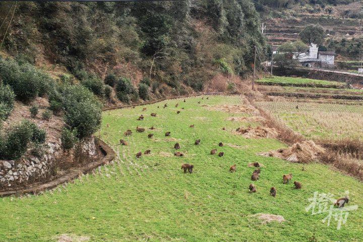气温急剧变冷后,去年12月至今,浙江丽水遂昌王村口镇的关川村,山上冲下来一大波猴子,成群结队闯到庄稼地,偷吃萝卜和青菜。