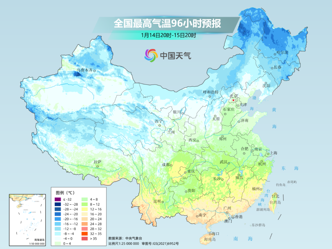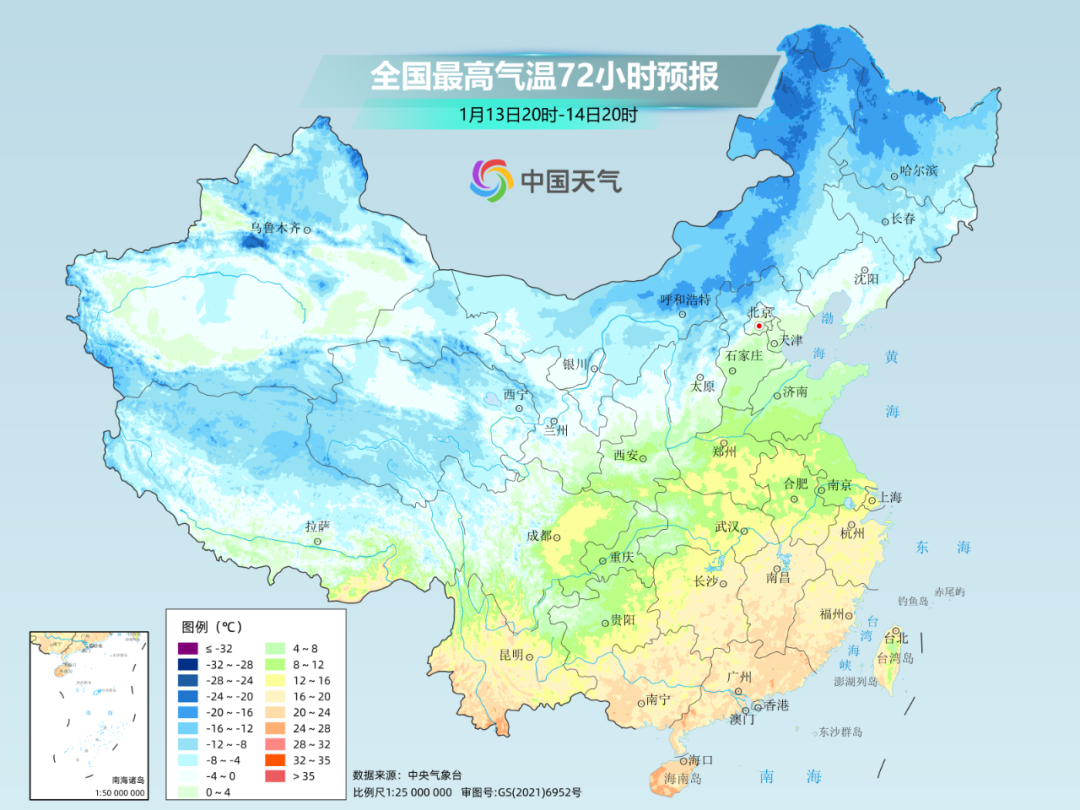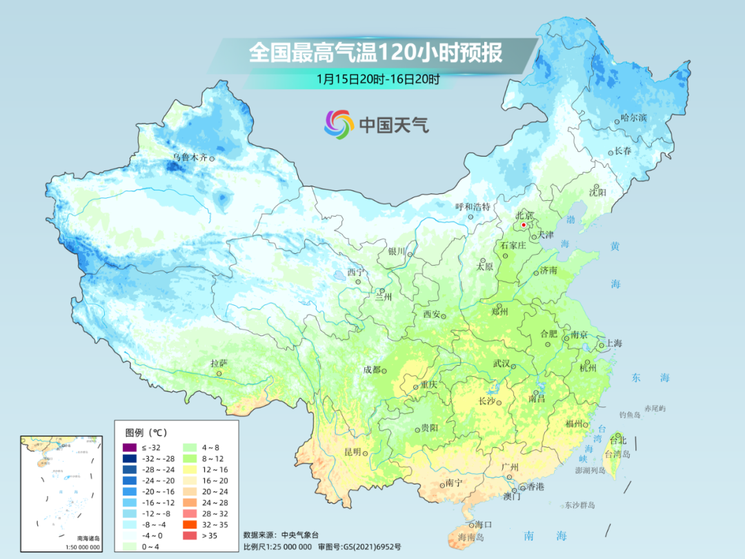 北方降温幅度不如南方显著,不过多地气温也将创立冬来新低。像北京、天津、太原都可能出现入冬后最寒冷的一天,白天最高气温接近、甚至不到冰点。