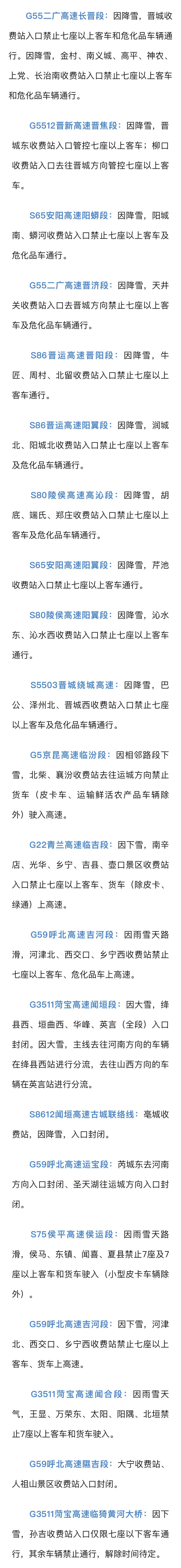 截至1月23日17:30,山西高速部分路段受降雪影响。