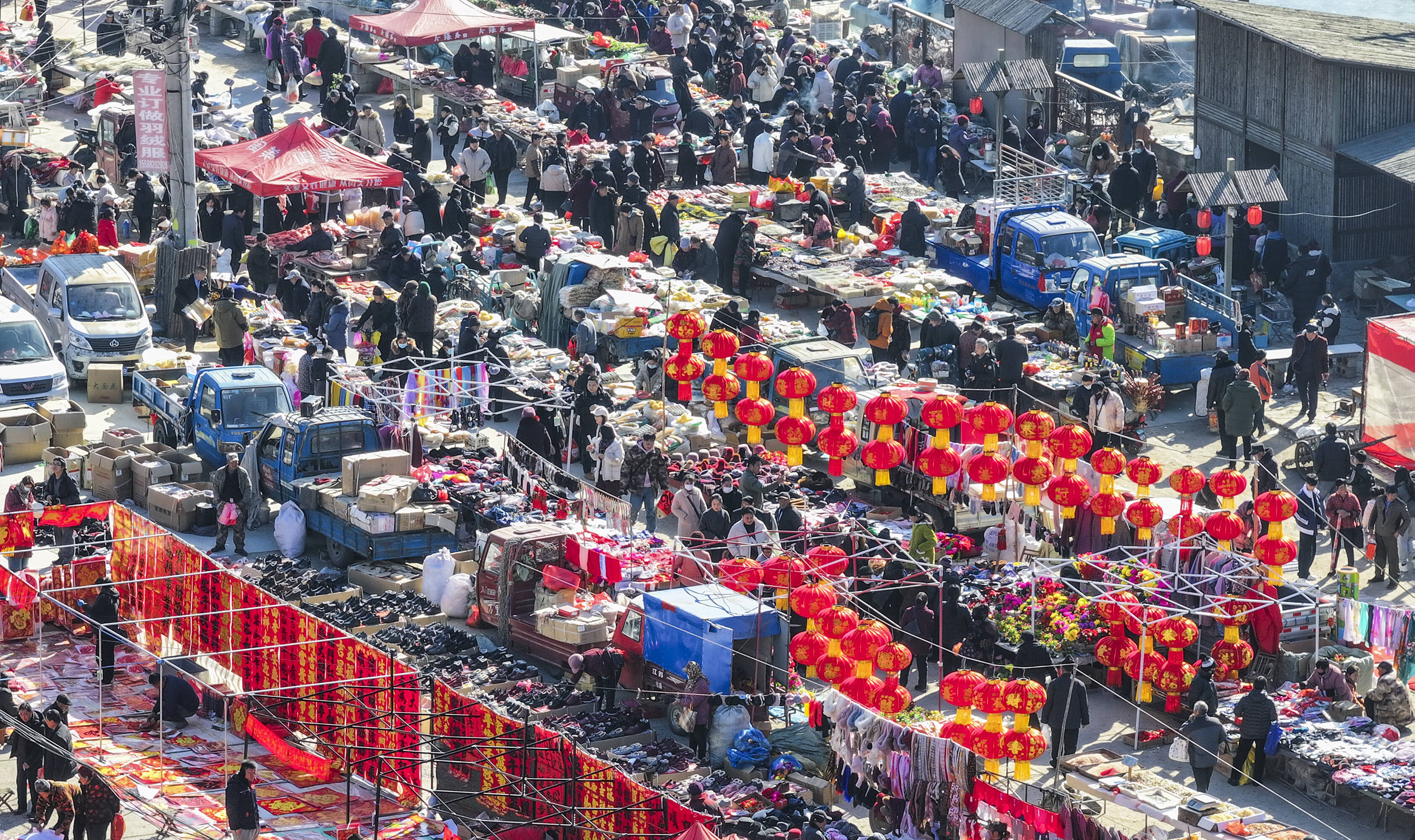 腊月二十六的年集最大、最热闹。德州地区一般都是五天一集,因此腊月二十六就是年前最后一个大集。街道两侧、市场里面到处都是摊点。卖鞭炮的大车一个挨一个,能摆几百米长,卖对联年画的让人挑花了眼,还有卖布匹服饰的、卖日常用品的、卖生猛海鲜的、卖各色小吃的,百货杂陈,一应俱全。赶年集买年货的人早早就起来了,来自四邻八乡,手里提着各色包袱、篮子,不同的脸上挂着相同的笑容。城里人、乡下人、东庄的、西村的,来到年集上就不分你我,拥挤在同一条街道上,挑选着不同的年货,体验着相同的兴奋和快乐。村里那些热情的媒婆,最喜欢带上年轻的姑娘小伙在年集上相亲,双方都穿得整齐一新,在某个角落里见面。