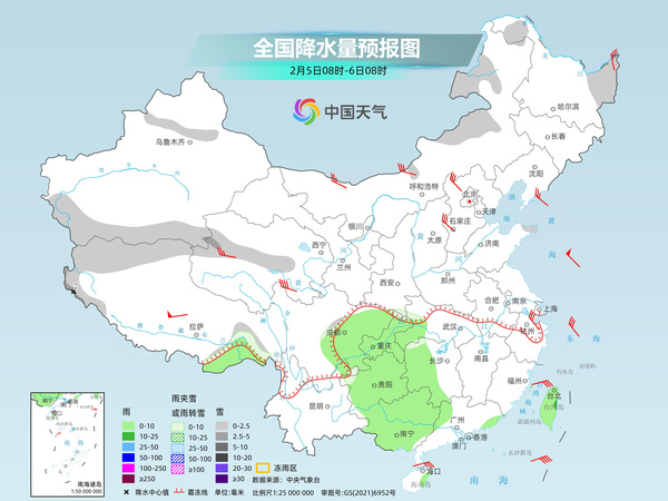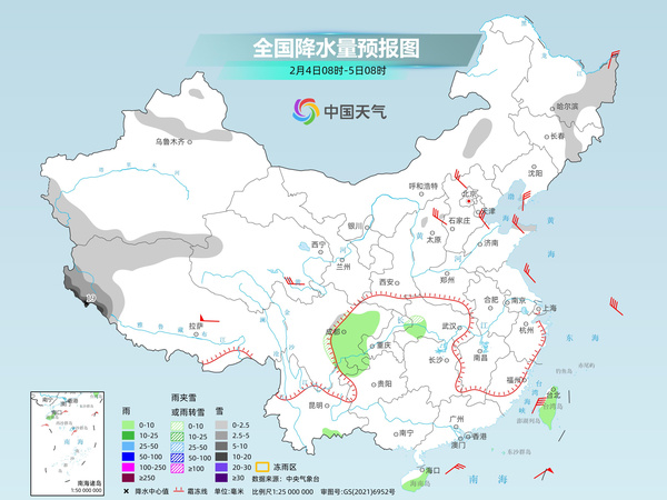 随着暖湿气流逐渐减弱,冷空气不断南下,今天我国雨雪范围进一步缩减,南方多地有望放晴。中央气象台预计,新疆西部和沿天山地区、西藏西部和北部、内蒙古中部、黑龙江东部、吉林东部、山东半岛北部等地部分地区有小雪或雨夹雪,其中,西藏西部部分地区有中到大雪,局地暴雪。