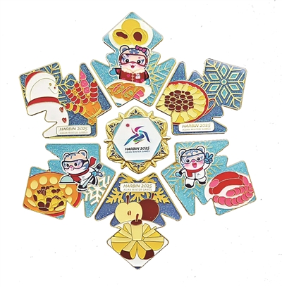 图四:亚冬会冬雪纪念徽章套装。
