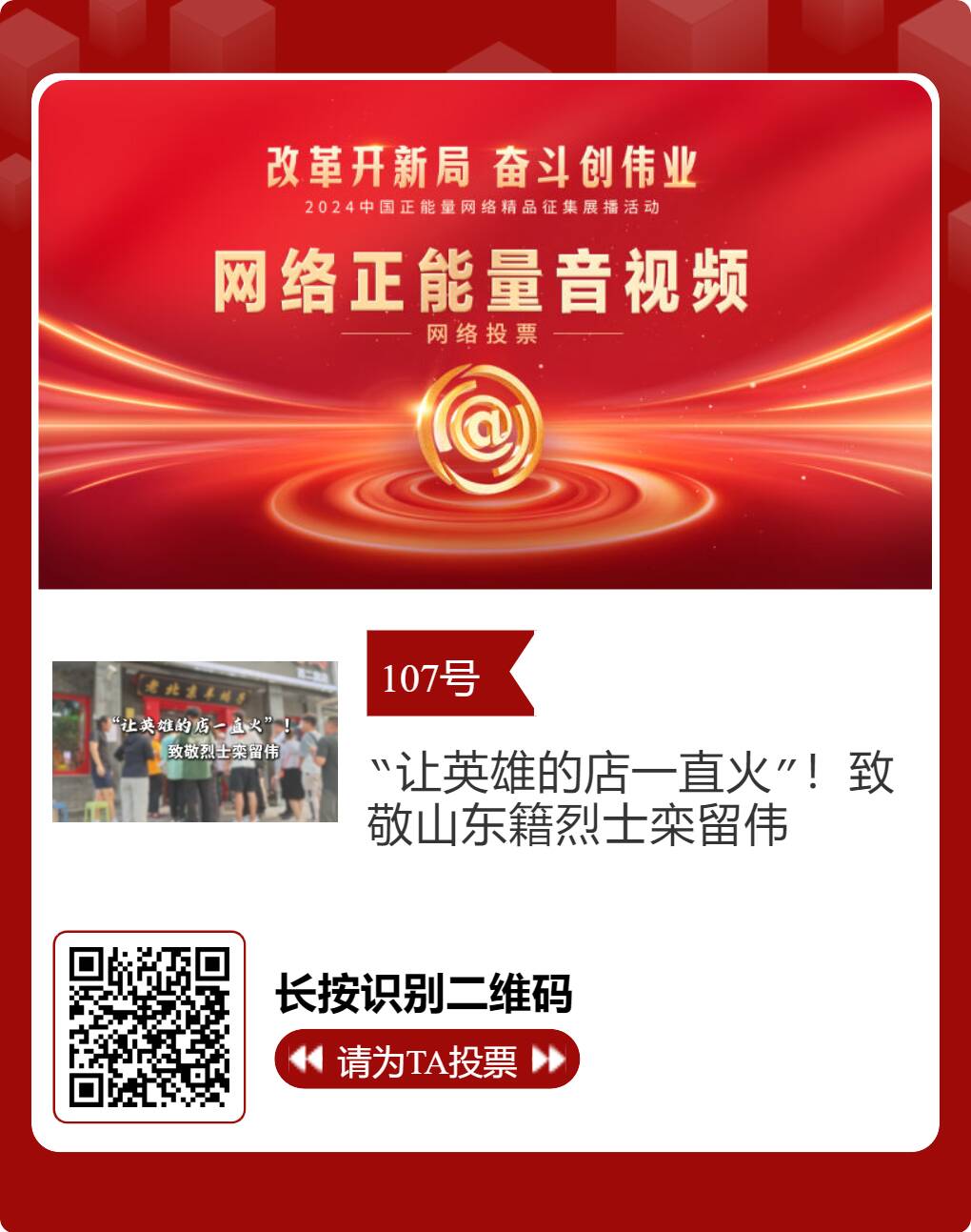 齐鲁网·闪电新闻2月15日讯 2024中国正能量网络精品征集展播活动网络投票火热进行中!山东台5件优秀作品成功入围,期待您的投票!