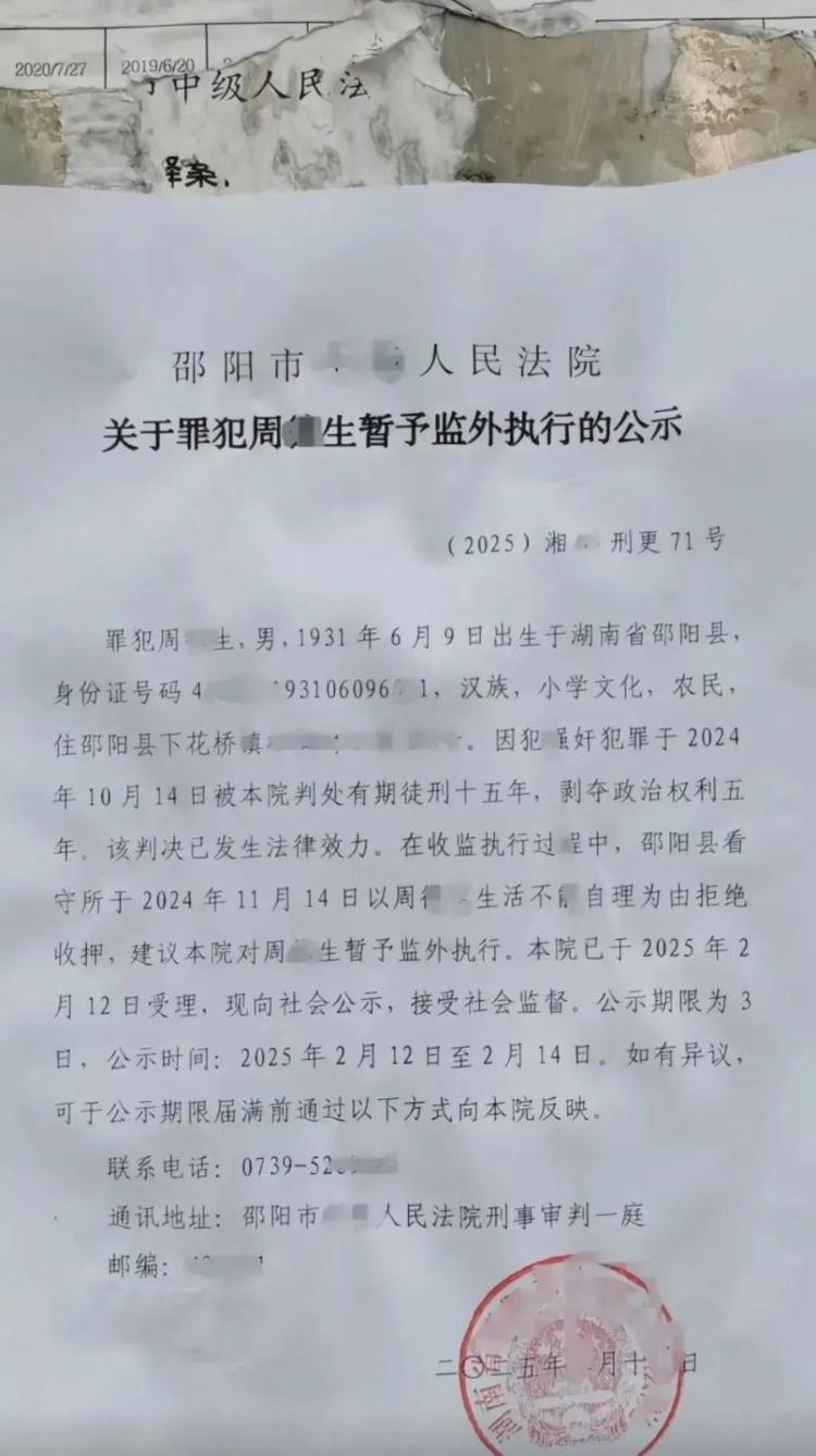 我国 《中华人民共和国刑事诉讼法》规定了3类可以暂予监外执行的情形,其中包括“生活不能自理,适用暂予监外执行不致危害社会的”。近年以来,我国司法系统持续整治“纸面服刑”“提钱出狱”问题,严格规范减刑、假释、暂予监外执行流程。包括这一次邵阳中院公布周某某“罪犯暂予监外执行”的公示,也是严格落实法律要求,推动司法的阳光化。